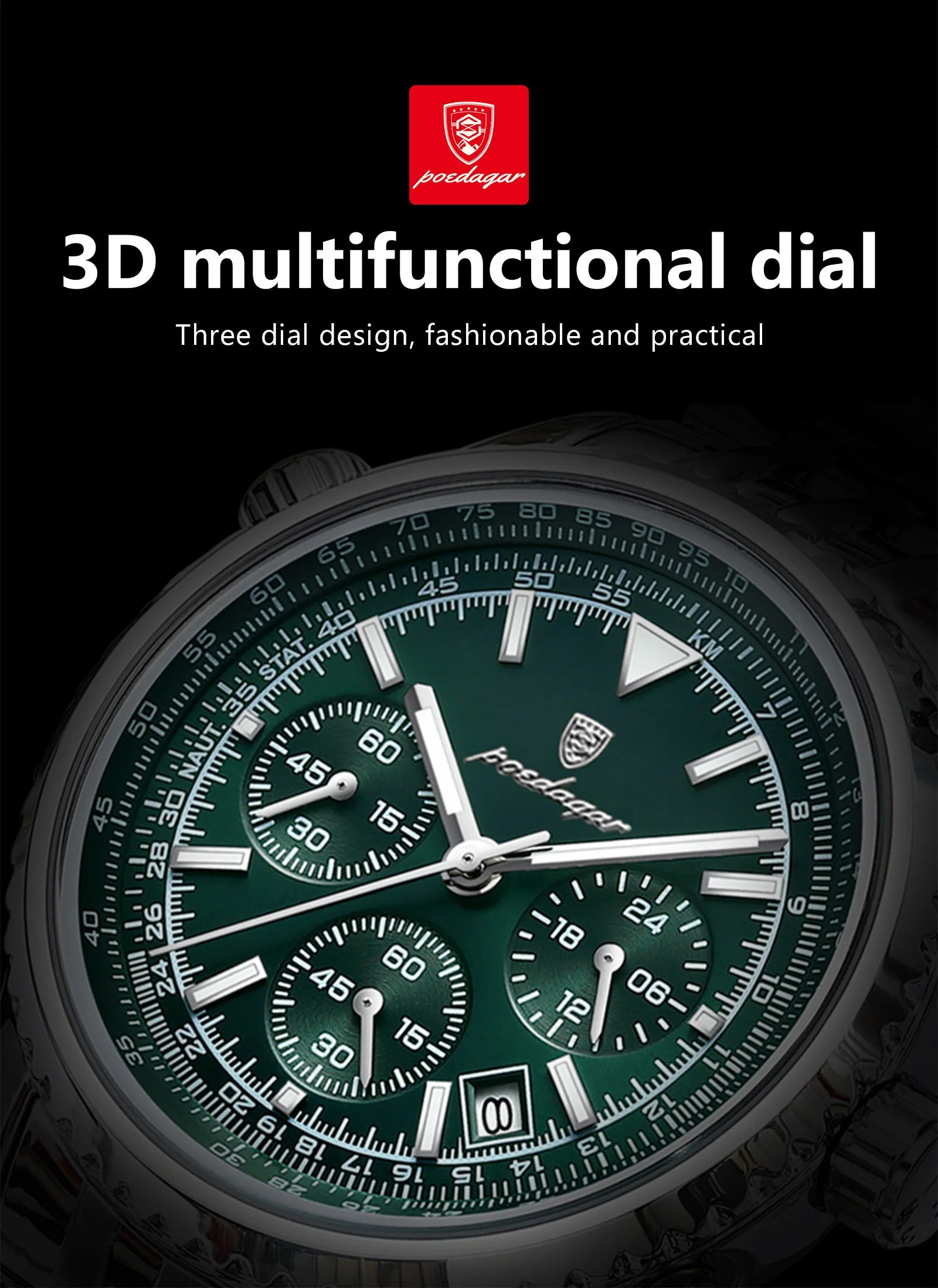 POEDAGAR Men’s Luxury Date Chronograph Stainless Steel Watch
